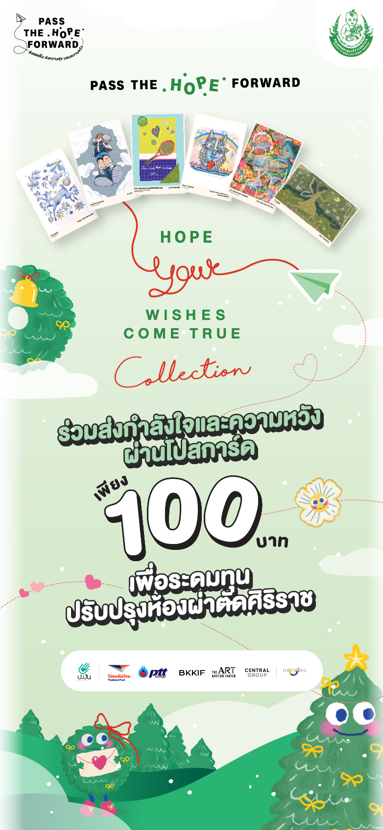 อีกมากมาย เพื่อนำรายได้จากการจำหน่ายโปสการ์ดหลังหักค่าใช้จ่าย สมทบทุนศิริราชมูลนิธิ กองทุนห้องผ่าตัดศิริราช